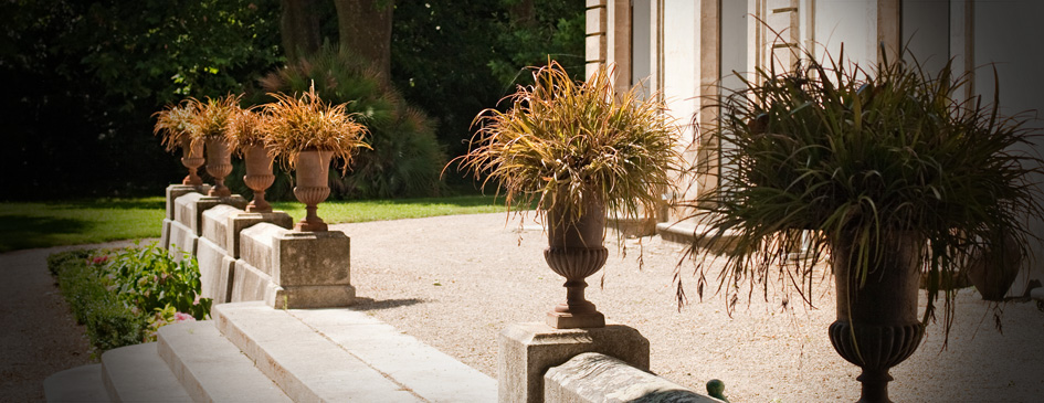 Louis Michel Garros decides to integrate the main building, a sober XVIIIth century mansion built on probably Roman foundations, into a U shaped building, flanked by two pavilions.