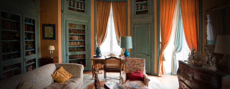 In the blue library read a book or watch a movie surrounded by books, objects and beautiful old wood panels in a peaceful and cosy atmosphere (TV, DVD player, Wifi).